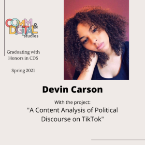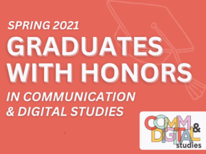 This page features the 2025 class of Honors in Communication and Digital Studies. To earn this recognition, these students graduated their degree with a minimum 3.7 GPA in their major and completed a capstone project worthy of distinction as a CDS honors project.