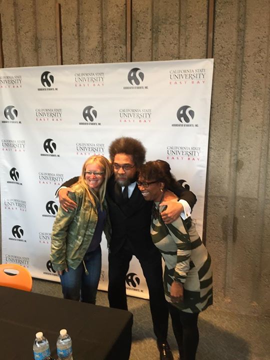 Jennifer Eagan (Philosophy ’02), professor of philosophy and public affairs & administration at California State University-East Bay is seen here (left) recently with a colleague and (center) Cornell West, professor of philosophy and Christian Practice at Union Theological Seminary and Professor Emeritus of Philosophy at Princeton University.