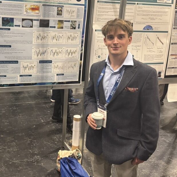 Congratulations to Ned Gable (Environmental Science and Chemistry 27’) for being awarded the Goldwater Scholarship, the most prestigious award for undergraduates in STEM. Ned is working with Dr. Grothe on cutting-edge research, testing new coral species and techniques to reconstruct past climate conditions. His first project included testing the geochemistry of a new coral species as a sea surface temperature recorder. He presented that work at the American Geophysical Union’s Ocean Sciences Meeting in Glasgow, Scotland. His current project supports Dr. Grothe’s Waple Fellowship, leading an emerging technique using ICP-MS (Inductively Coupled Plasma Mass Spectrometry) to analyze trace elements more accurately in corals to reconstruct sea surface temperatures (SSTs).